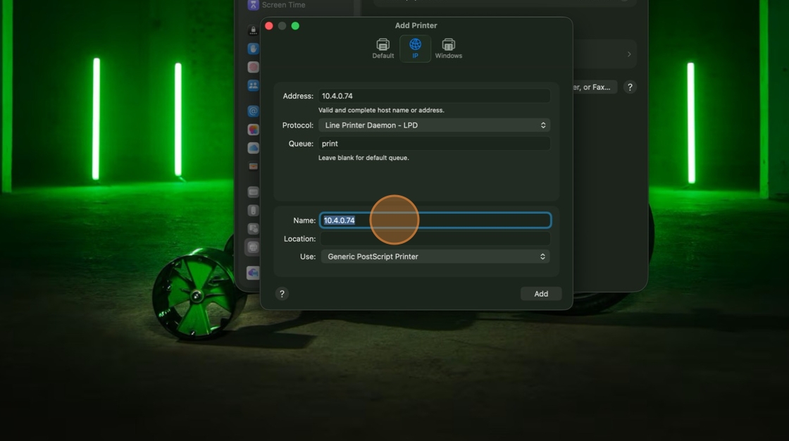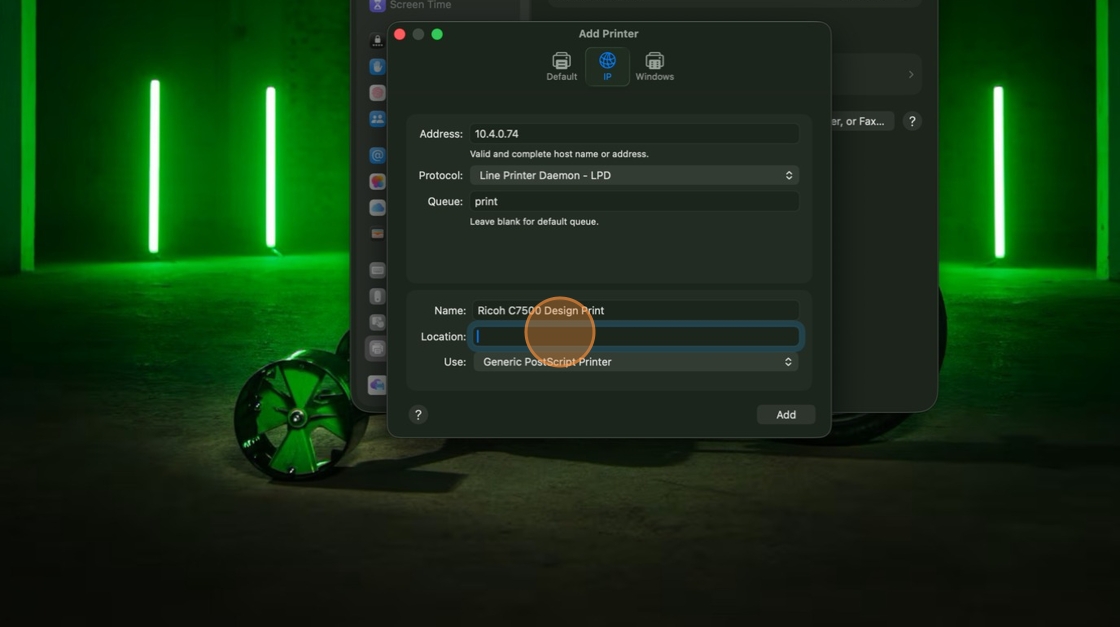 6. Double-click "Name" and name it Ricoh C7500 Design Print or Hold, depending on which one you are adding.