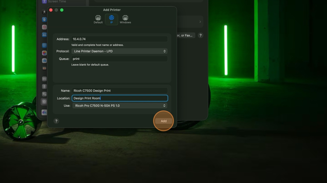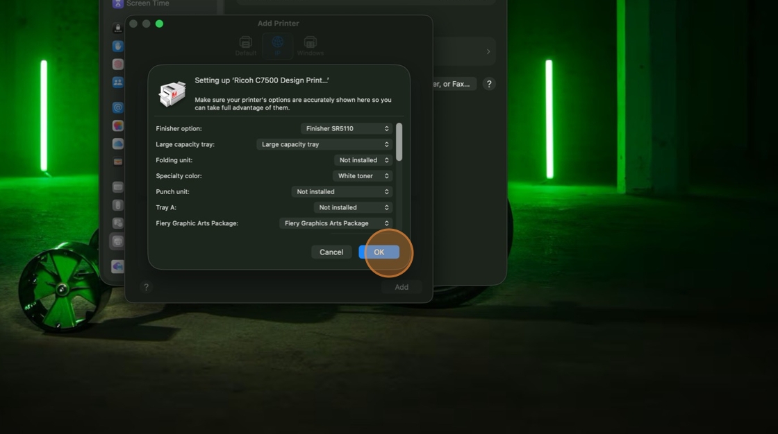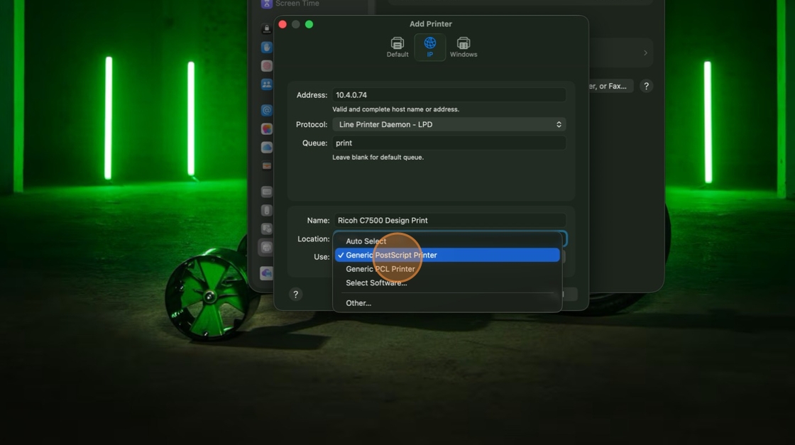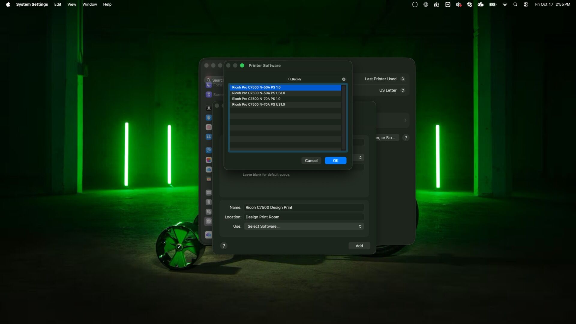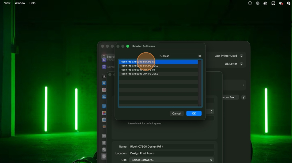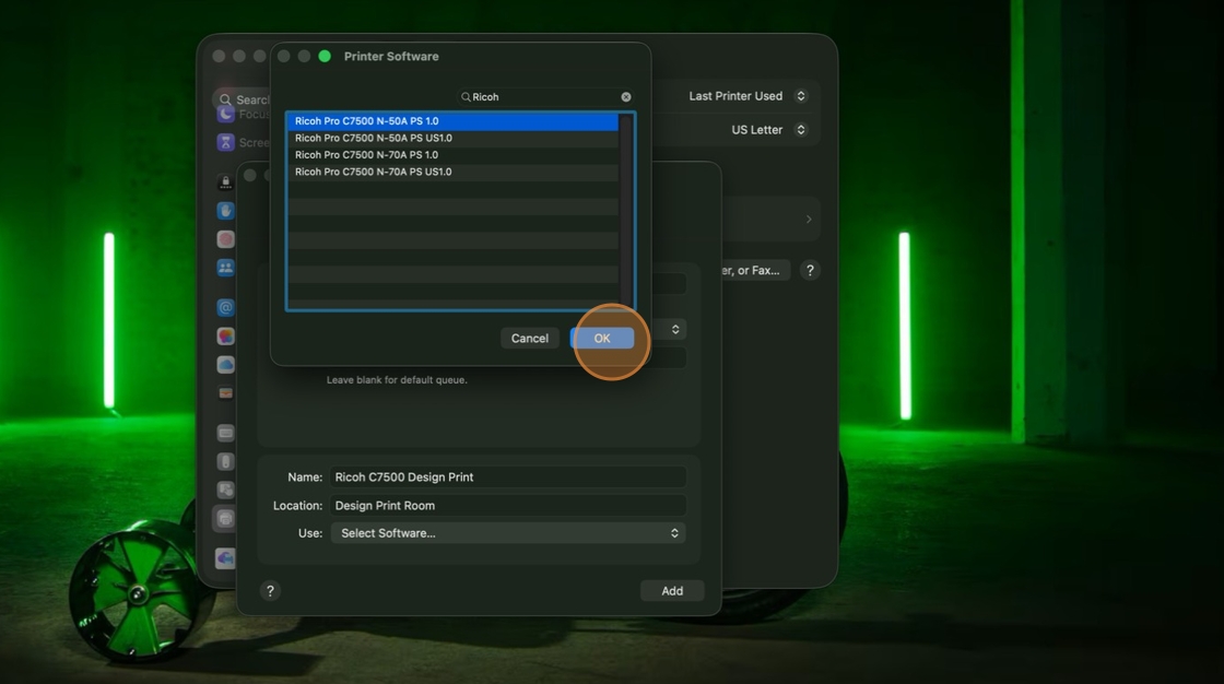 11. Click "Ricoh Pro C7500 N-50A PS 1.0"